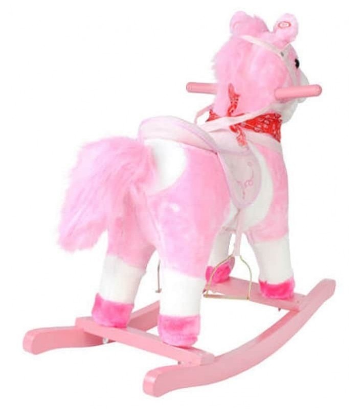 Deze roze Hobbelpaard heeft prachtige manen en bijzondere eigenschappen. Ze kan namelijk hinniken en vrolijke liedjes zingen. Zijn mond gaat dan bewegen en ook zijn staart gaat heen en weer.