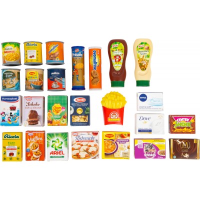 Deze 25 delige set bevat alle dagelijks boodschappen en is een leuke aanvulling voor winkeltje maar er kan natuurlijk ook zo mee gespeeld worden.